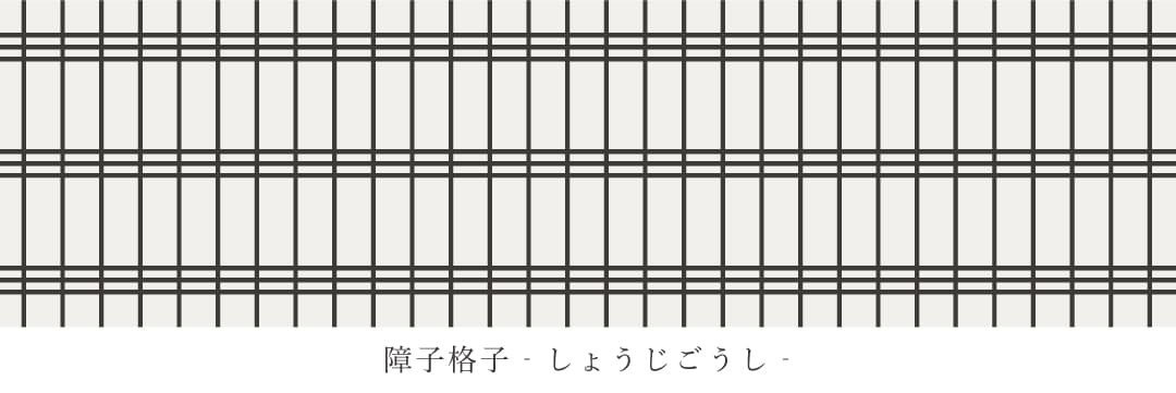 シンプルな縦横比の同じ格子を「碁盤格子(ごばんごうし)」、3本を1組にした格子を「三筋格子(みすじごうし)」、大きな太い格子の中に小さな細い格子を交差させたものを「翁格子(おきなごうし)」、太い格子に細い格子が平行したものを「童子格子(どうじこうし)」や「子持格子(こもちごうし)」といいます。