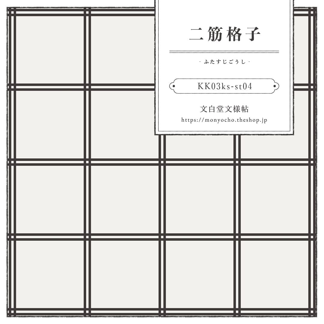 「格子(こうし)」は幾何構成模様のひとつで、平行する経と緯の線が直角交差するように構成される文様です。「格子縞(こうしじま)」ともいい、縞文様の一種にも数えられます。