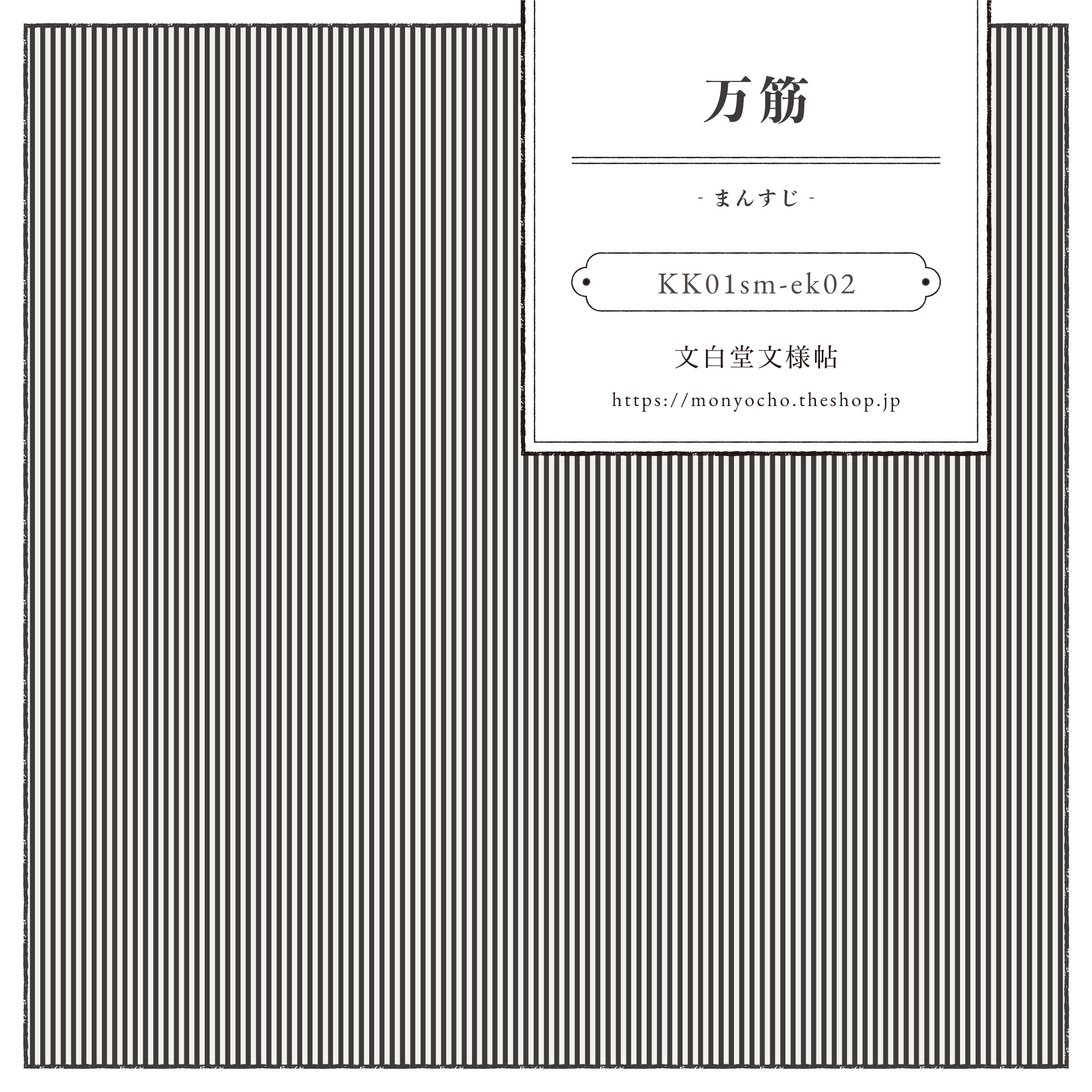 「万筋(まんすじ)」はとても細かい縞文様です。2本づつの縞糸と地糸で縞を構成したもを指し、江戸小紋では1寸(3cm)幅に23本で「万筋(まんすじ)」19本で「毛万筋(けまんすじ)」などとよばれています。