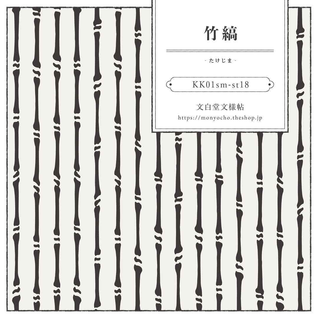 「竹縞(たけじま)」は竹を縞状に配置した文様で、江戸小紋などで用いられています。