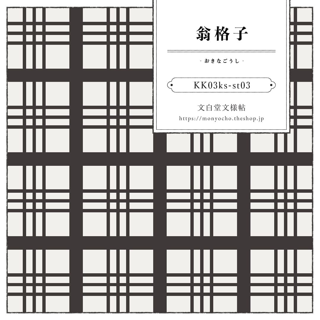 「翁格子(おきなごうし)」は太い格子の中にさらに多くの細い格子を配した格子文様です。翁が多くの子孫を持ったということからこの名がつきました。