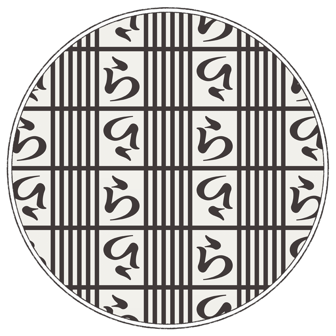「市村格子(いちむらごうし)」は1本の横縞と6本の縦縞格子の中に「ら」の文字を配して「一六ら」と読ませたた格子文様です。